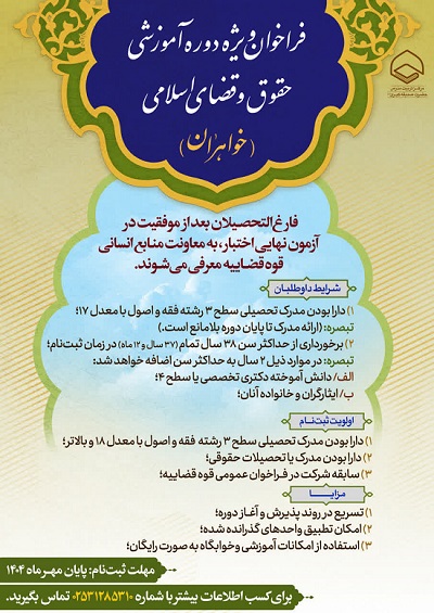 فراخوان ویژه دوره آموزشی حقوق و قضای اسلامی خواهران